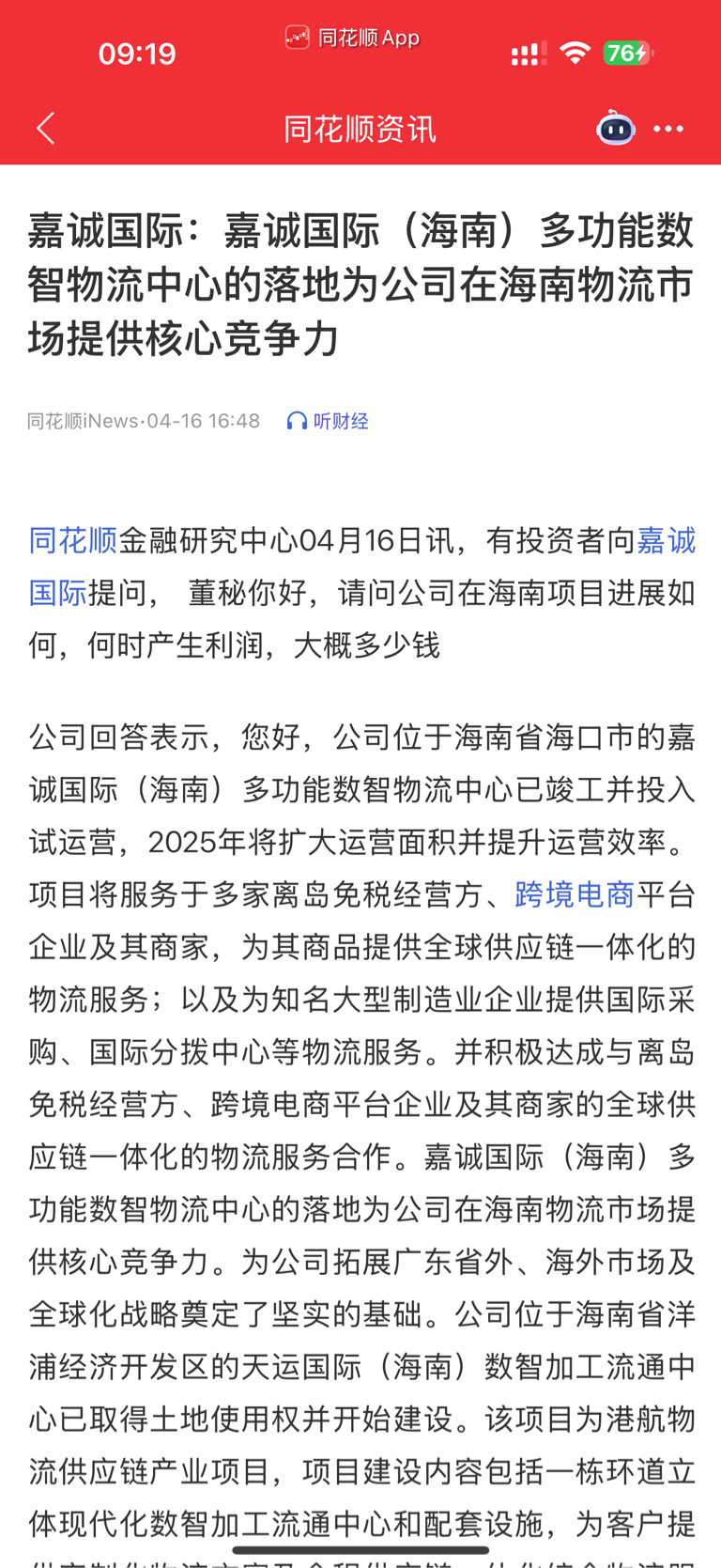 $嘉诚国际(SH603535)$