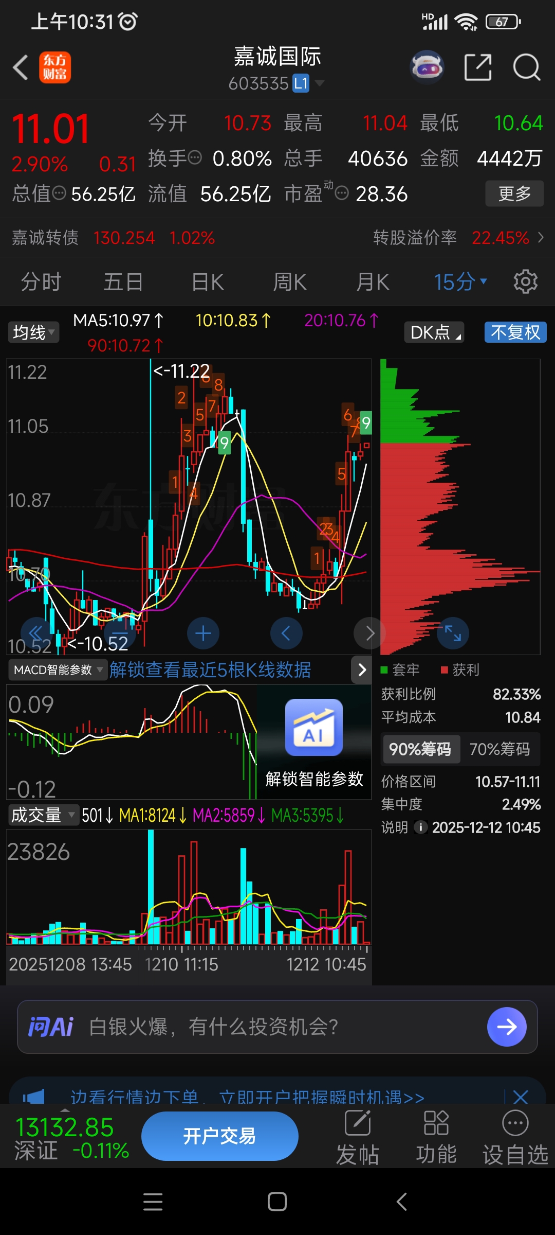 $嘉诚国际(SH603535)$ 十五分钟线走的漂亮不!