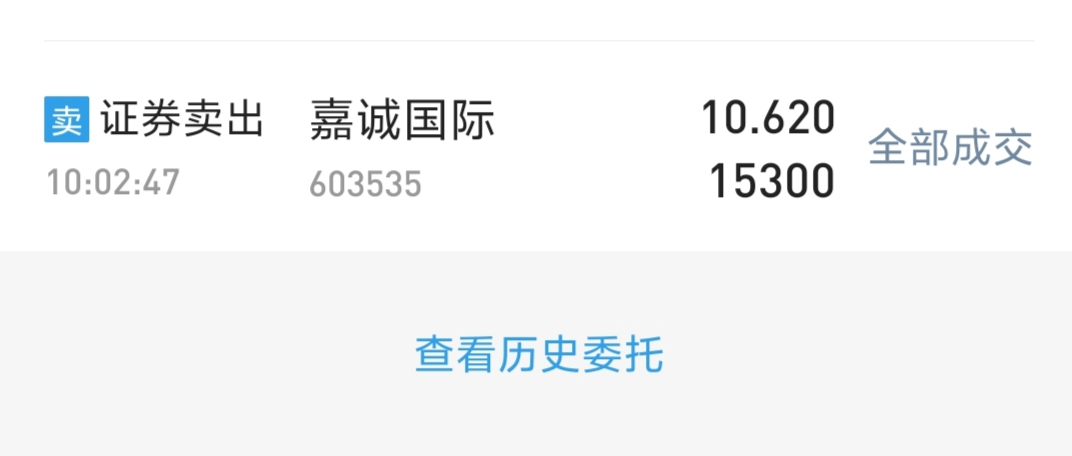 $嘉诚国际(SH603535)$ 全部割完了,亏2万7 留下的发财