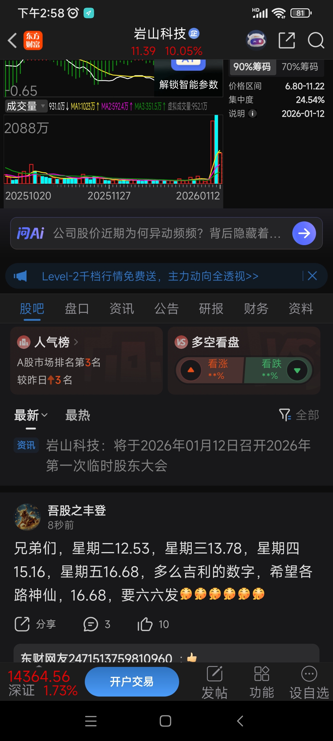 温馨提示: 1.根据《证券法》规定,禁止编造、传播虚假信息或者误导性信息,扰乱证券市场;2.用户在本社区发表的所有资料、言论等仅代表个人观点,与本网站立场无关,不对您构成任何投资建议。用户应基于自己的独立判断,自行决定证券投资并承担相应风险。《东方财富社区管理规定》
