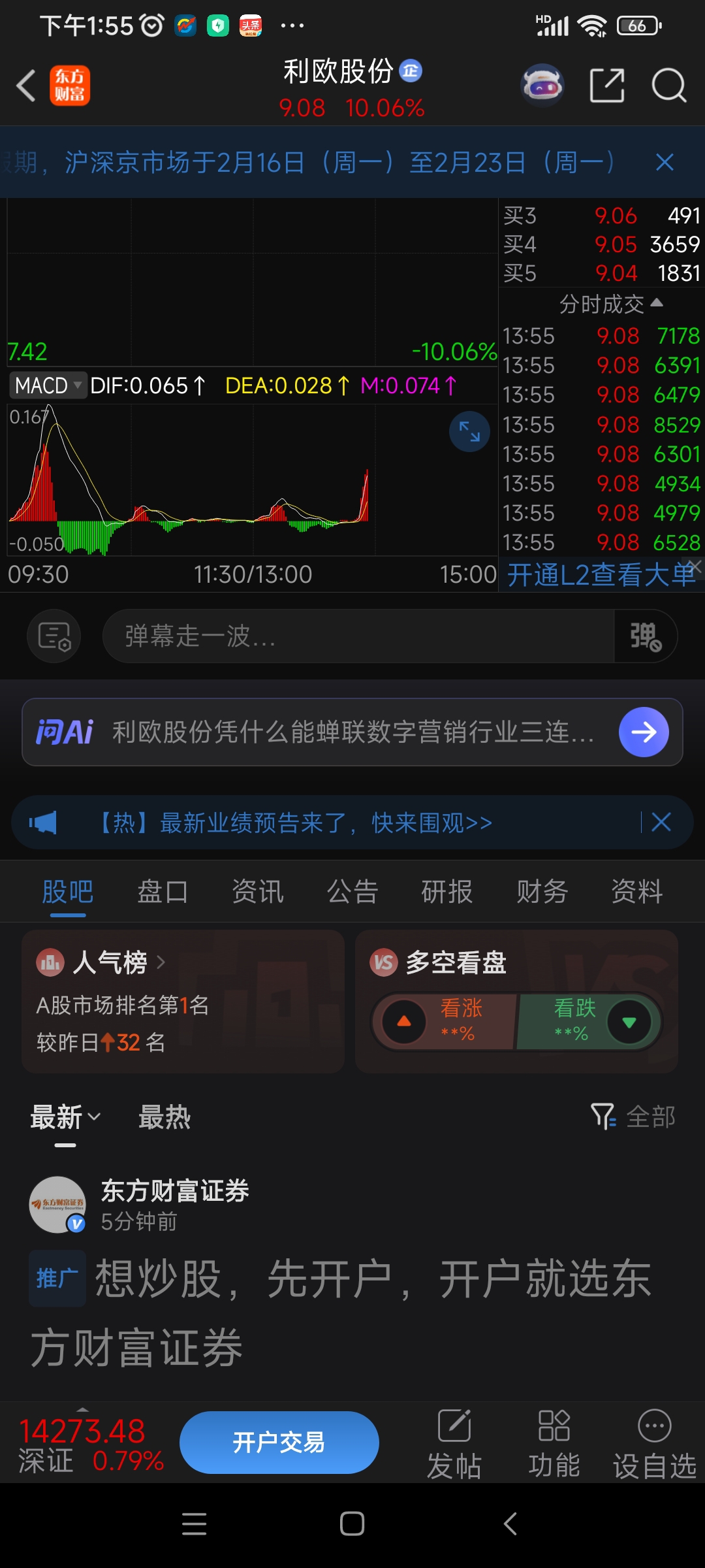 温馨提示: 1.根据《证券法》规定,禁止编造、传播虚假信息或者误导性信息,扰乱证券市场;2.用户在本社区发表的所有资料、言论等仅代表个人观点,与本网站立场无关,不对您构成任何投资建议。用户应基于自己的独立判断,自行决定证券投资并承担相应风险。《东方财富社区管理规定》