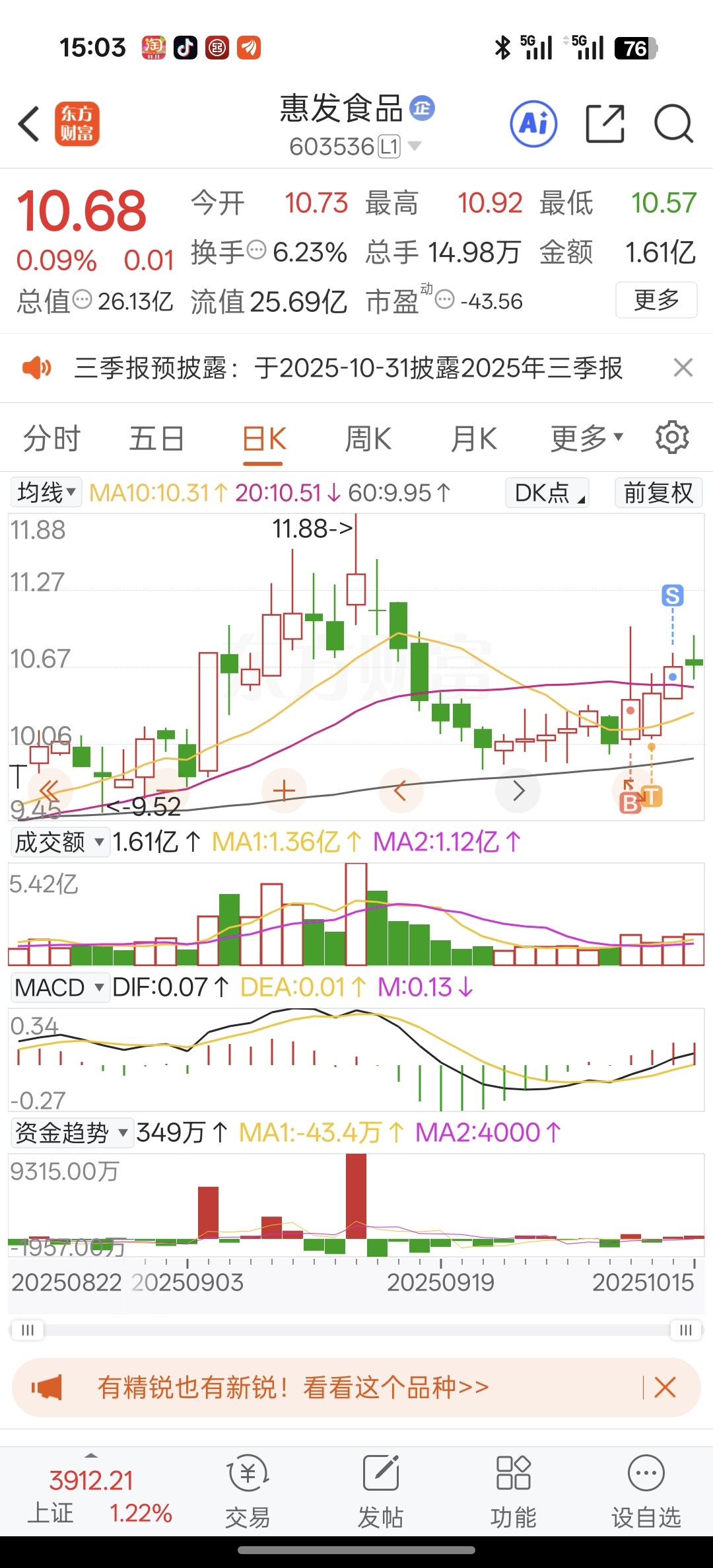 $惠发食品(SH603536)$ 先走一步兄弟们