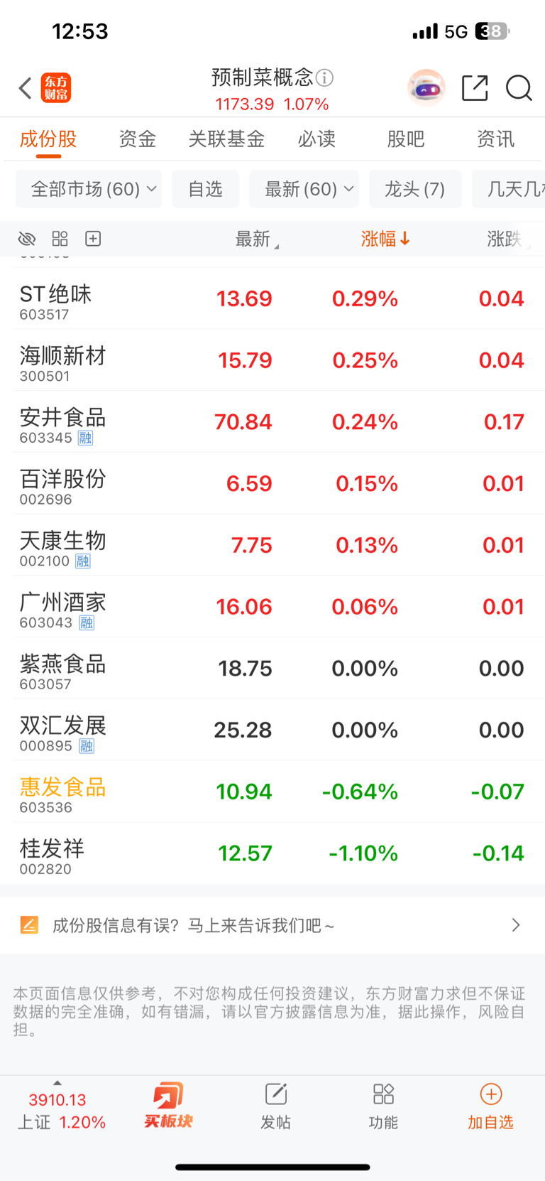 $惠发食品(SH603536)$ 能翻红吗,板块倒数第二