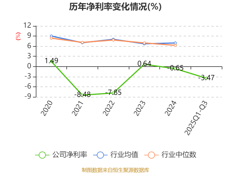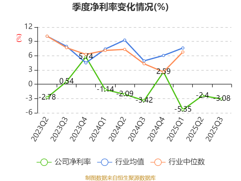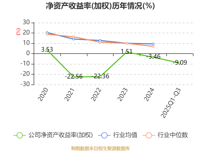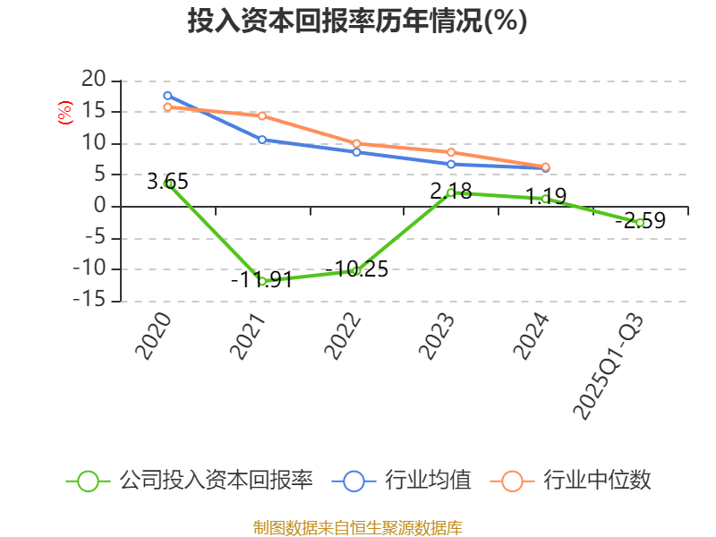 盈利能力方面, 2025年前三季度公司加权平均净资产收益率为-9.09%,同比下降3.29个百分点。公司2025年前三季度投入资本回报率为-2.59%,较上年同期下降1.33个百分点。
