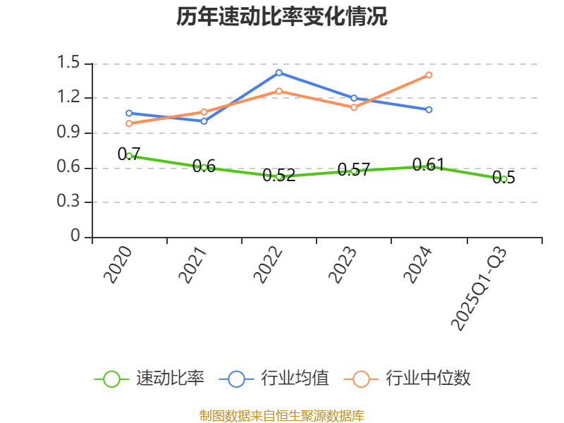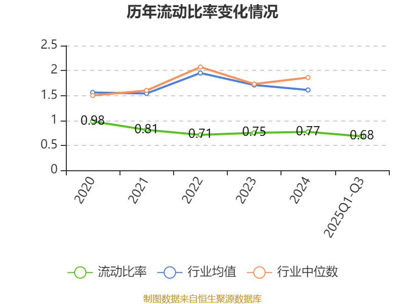2025年前三季度,公司流动比率为0.68,速动比率为0.5。