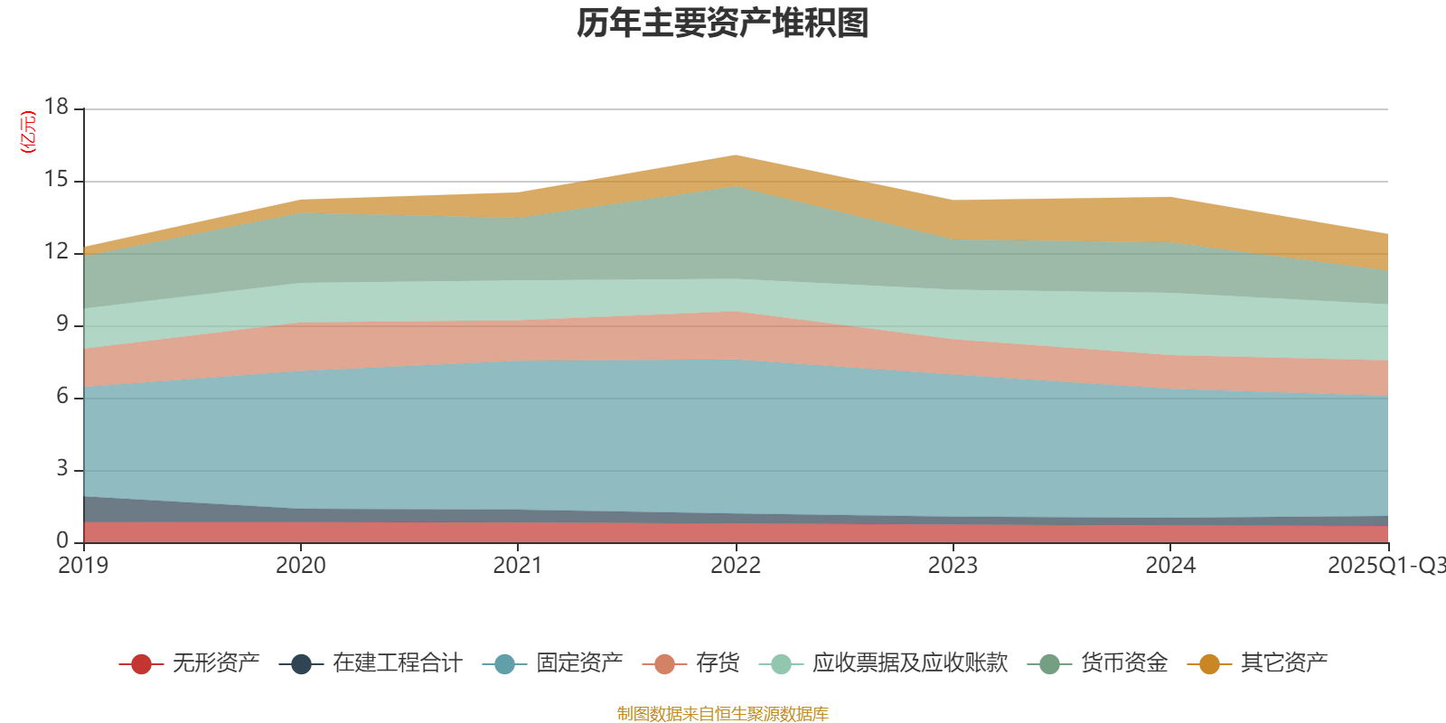 资产重大变化方面,截至2025年三季度末,公司货币资金较上年末减少33.65%,占公司总资产比重下降3.76个百分点;其他应收款(含利息和股利)较上年末减少53.99%,占公司总资产比重下降2.11个百分点;存货较上年末增加5.66%,占公司总资产比重上升1.78个百分点;固定资产较上年末减少6.76%,占公司总资产比重上升1.65个百分点。