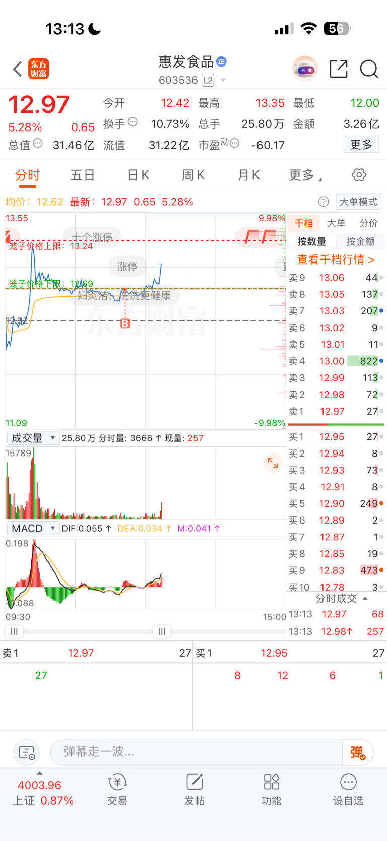 $惠发食品(SH603536)$ 我想跑,但是我刚进来啊
