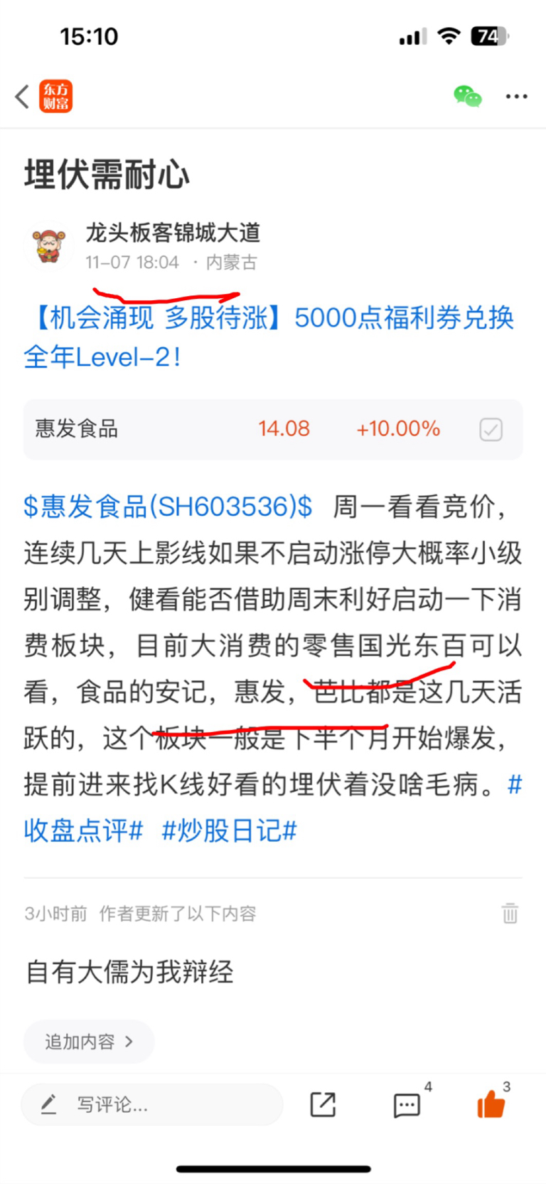 $惠发食品(SH603536)$ $东百集团(SH600693)$ $国光连锁(SH605188)$ 啥都不说了,这个准确率你还要什么自行车呢,还不点关注!(安记利空丧失了身位板的优势了,但是形态可以的)。另外在WX GZH的复盘也是相当准确。