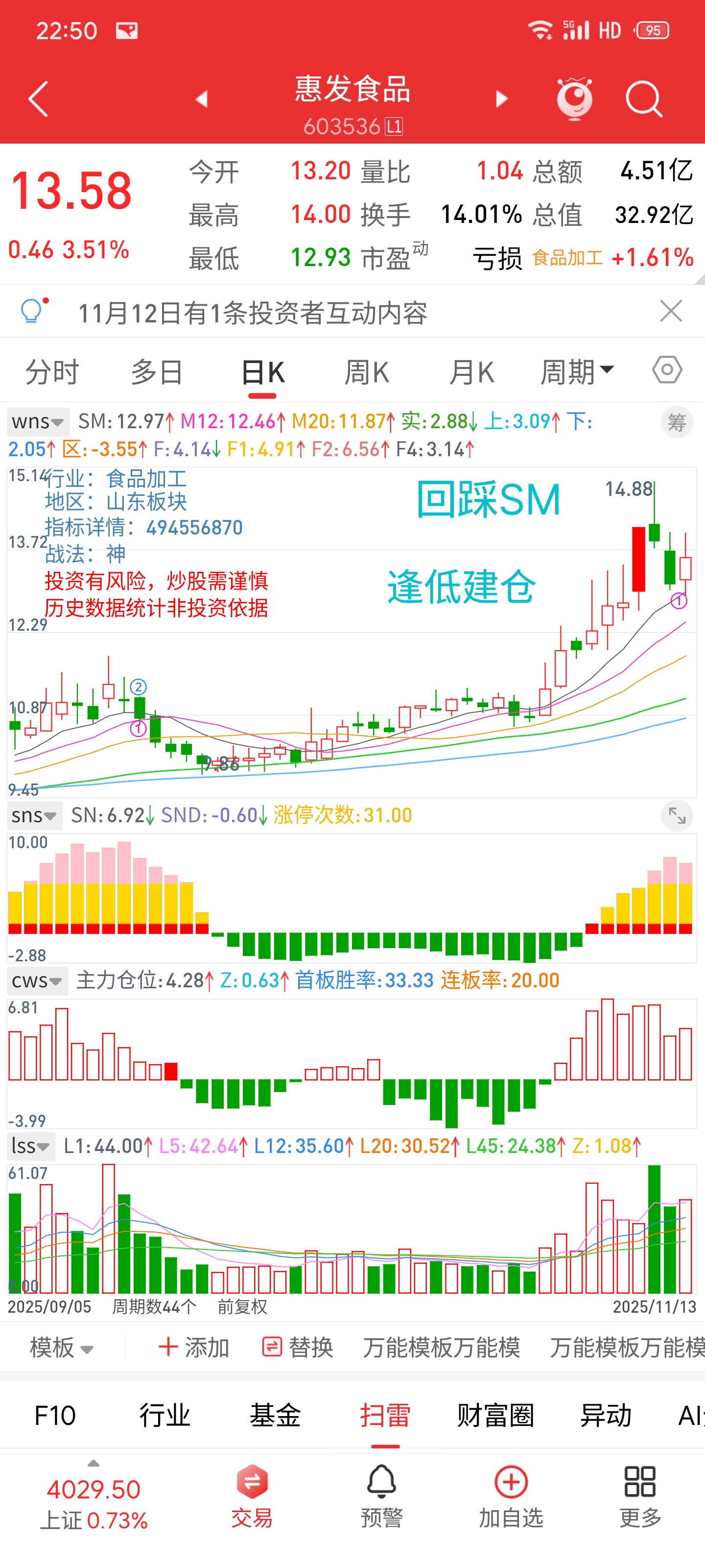 $惠发食品(SH603536)$ 今天放量启动加速。
