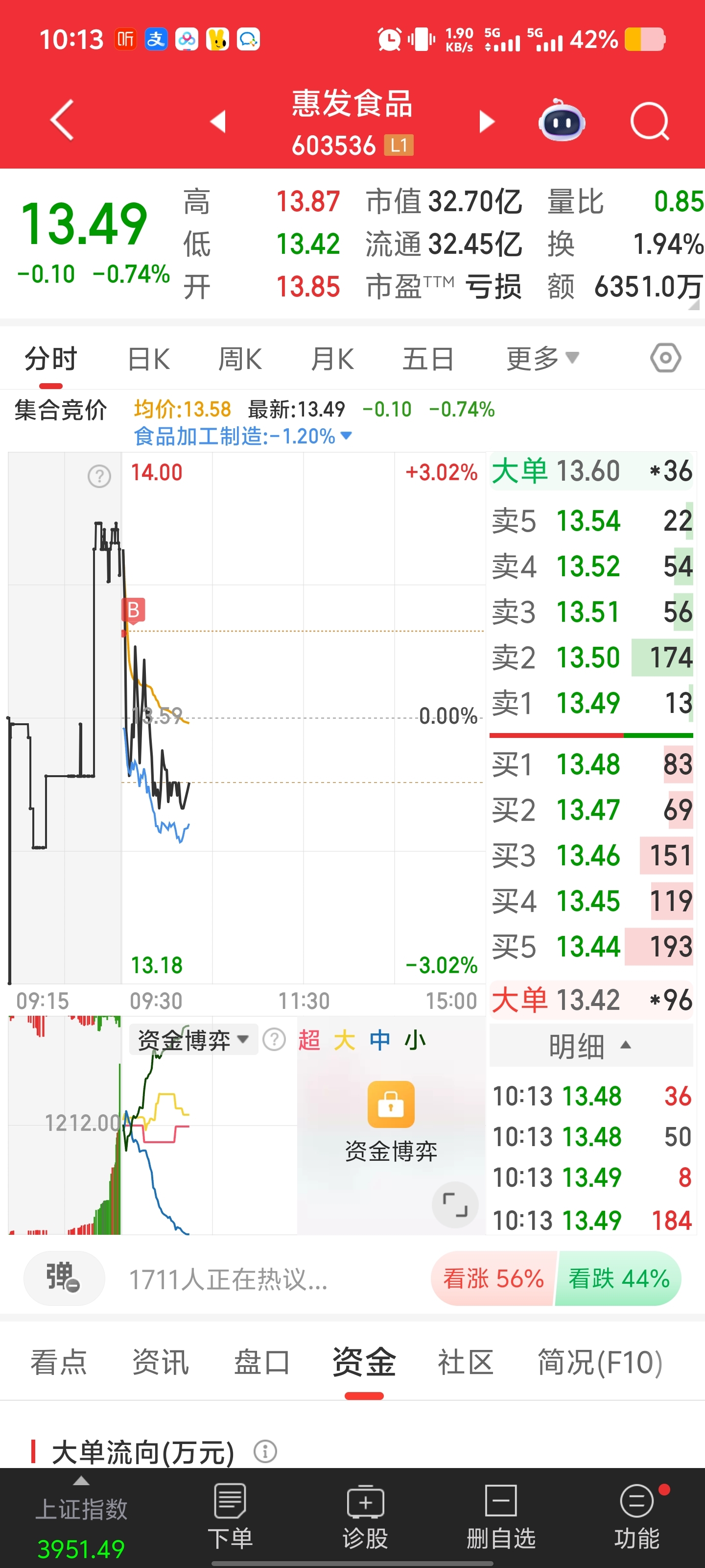 $惠发食品(SH603536)$ 你们不敢接的盘,我来接