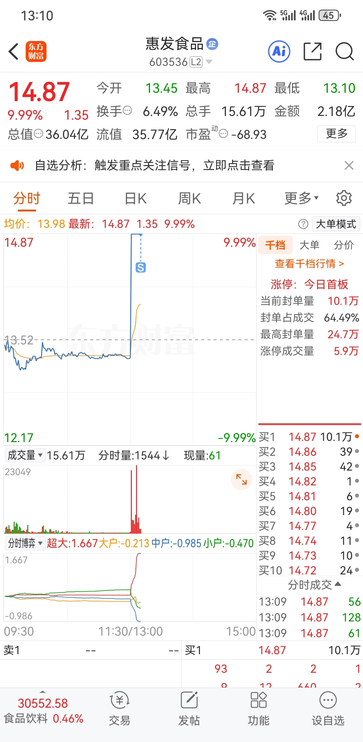 $惠发食品(SH603536)$ 这种行情我可不敢格局,留下格局的继续发财啦