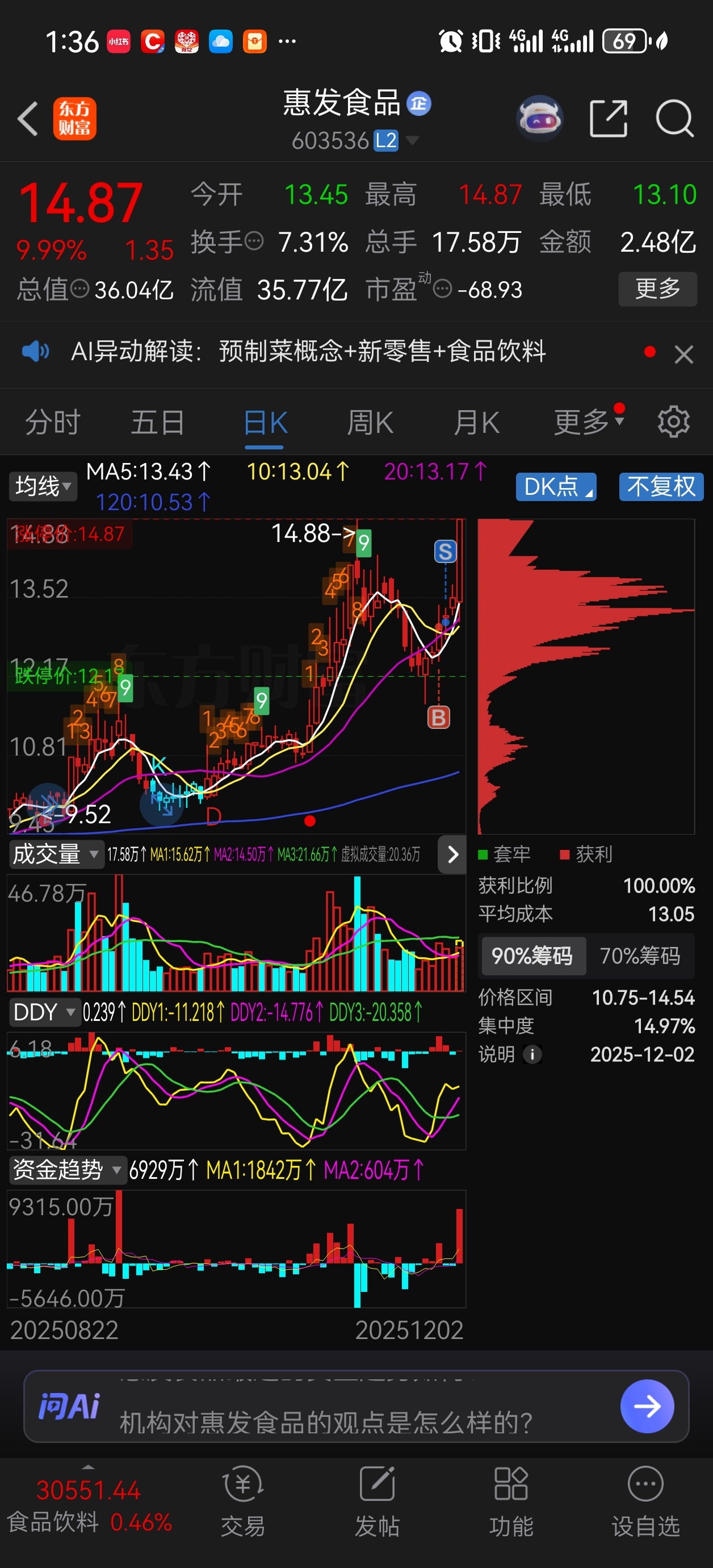 本来看海欣二板买的你,实在是等不了你这个墨迹劲了,看着海欣天天连板,果断换了,卖飞了也值了。一根大直线,量化无疑了。明天也很难有溢价。毕竟不是板块龙头,承接不住资金砸。#炒股日记#