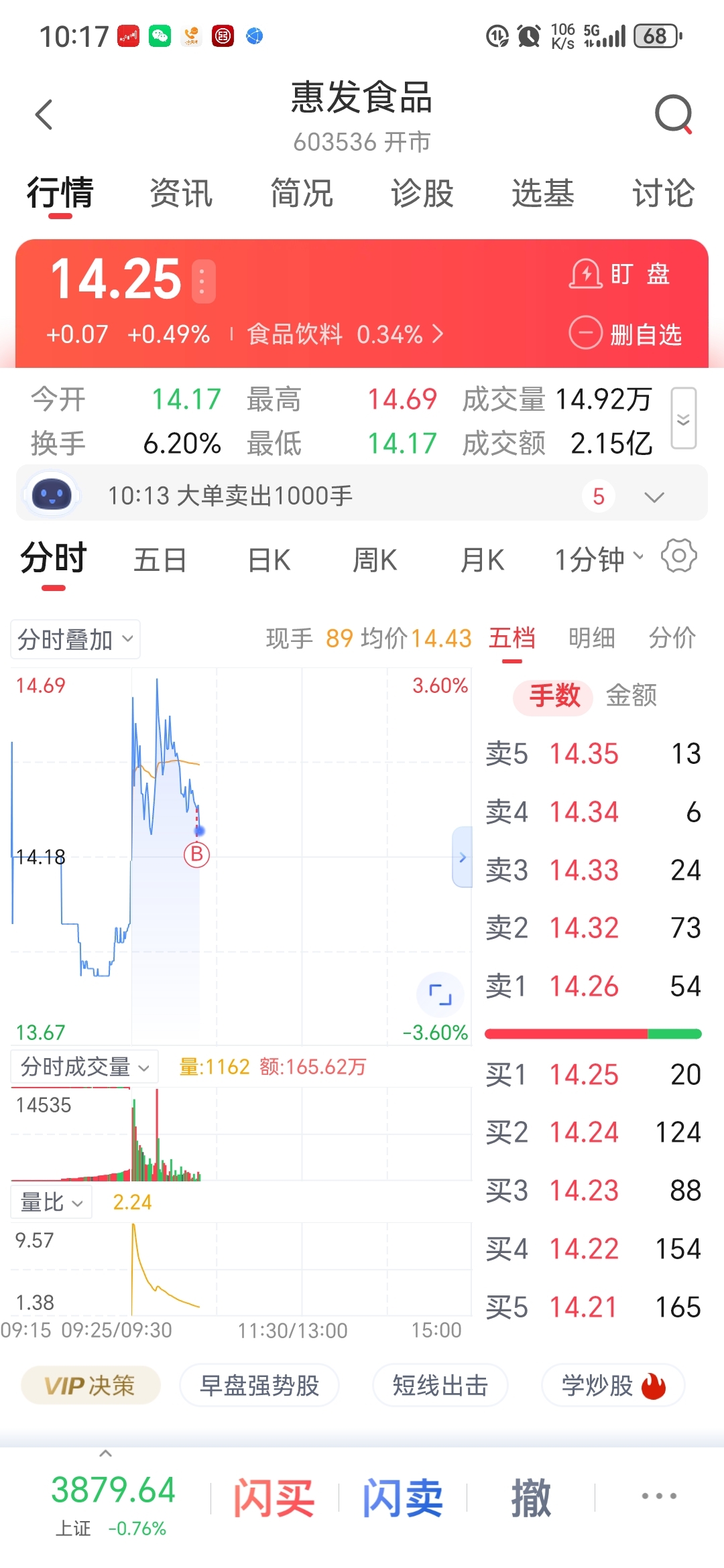 $惠发食品(SH603536)$ 被我买崩了