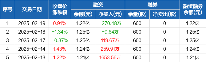 美诺华:融资净偿还270.48万元,融资余额1.22亿元(02-19)
