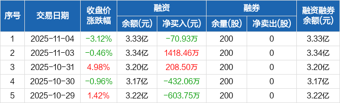 美诺华:融资净偿还70.93万元,融资余额3.33亿元(11-04)