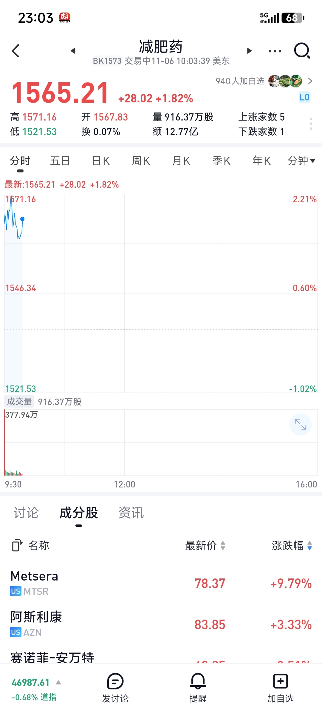 $美诺华(SH603538)$ 美股科技股终于跌了。但美股减肥药却很坚挺,明天风格转换了。