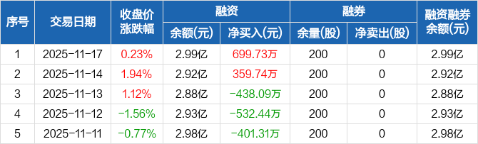 美诺华:融资净买入699.73万元,融资余额2.99亿元(11-17)