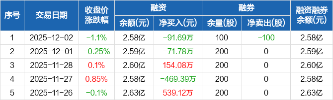 美诺华:融资净偿还91.69万元,融资余额2.58亿元(12-02)