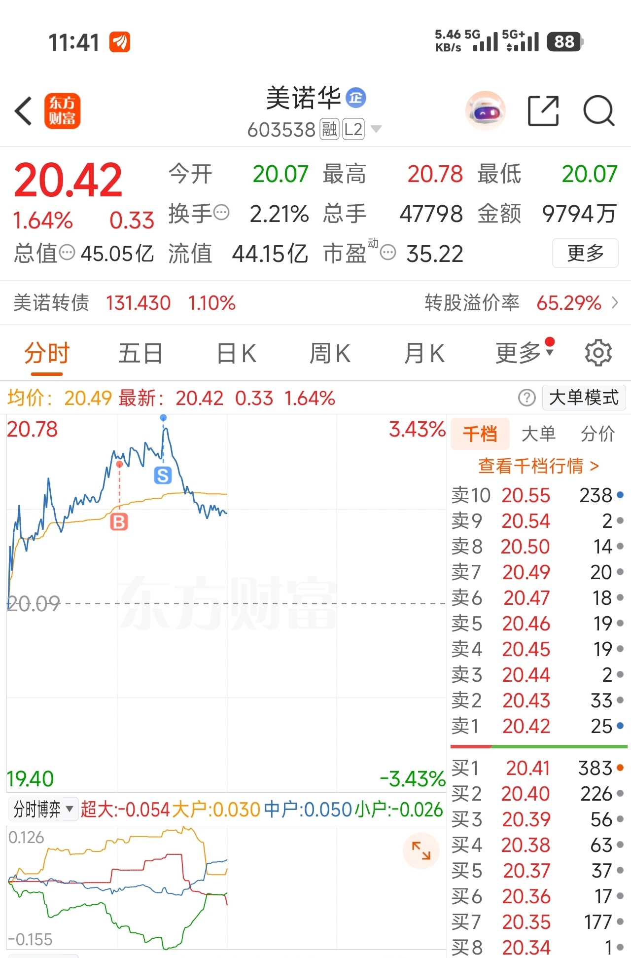 $美诺华(SH603538)$ 早上没敢买,高位买了T了0.17元。
