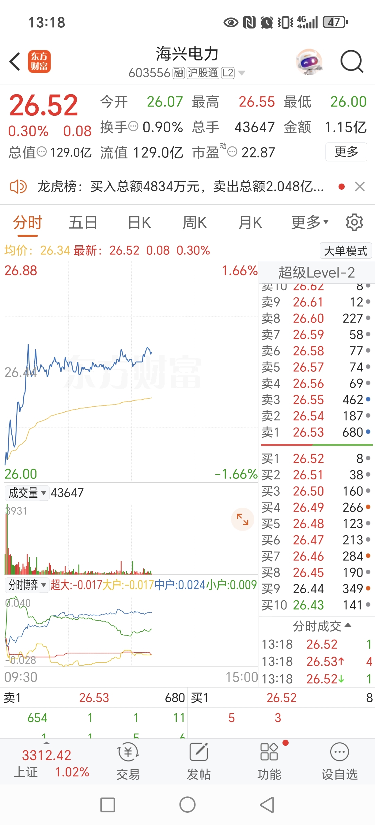 $海兴电力(SH603556)$ 无视大盘和板块大涨,主力还在逆势砸盘,太难受了,亏麻了
