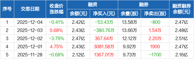 海兴电力:融资净偿还53.43万元,融资余额2.42亿元(12-04)