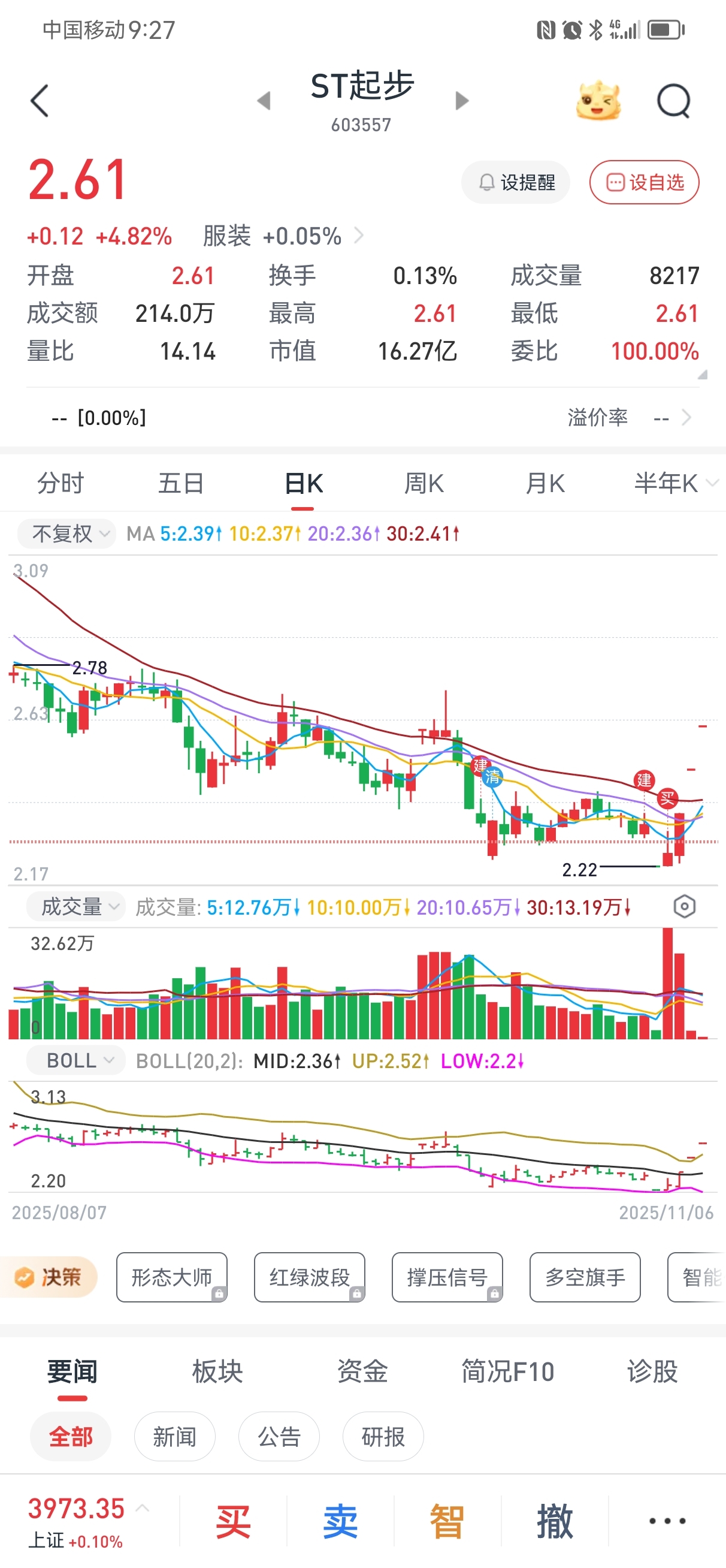 $ST起步(SH603557)$ 就追了十几万股还好赶上了,,,