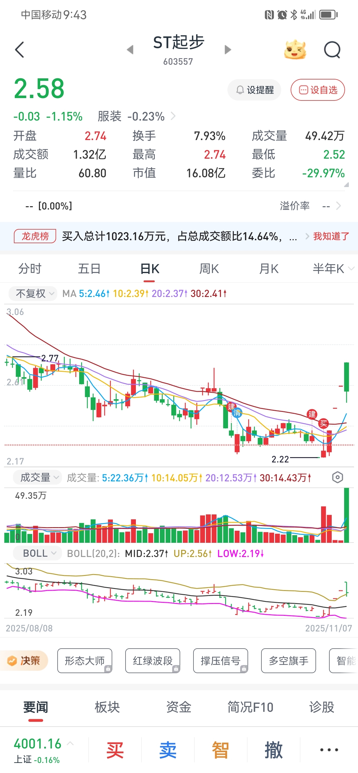 $ST起步(SH603557)$ 十几个点 没意义,先拿着,,,