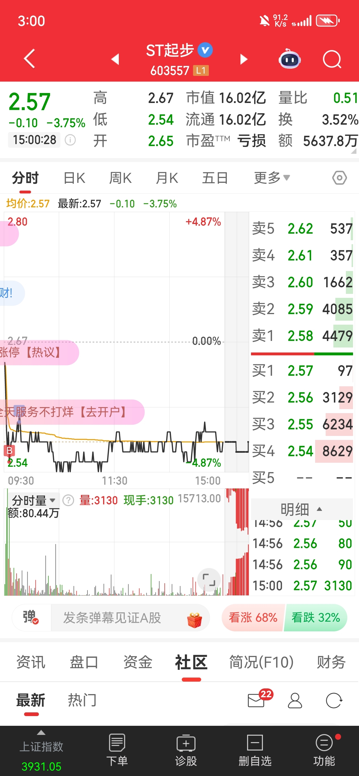 $ST起步(SH603557)$ 开盘满仓T两个点,香香啊