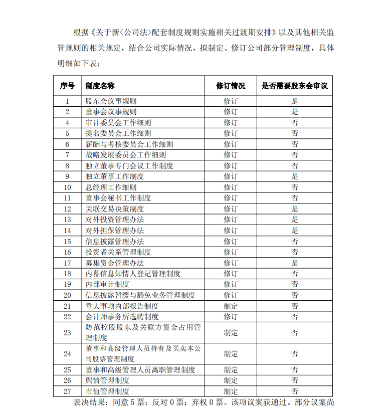 这个董事会公司还新制定了几项制度