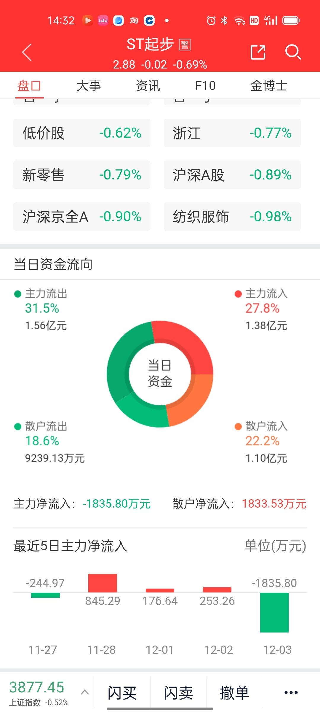 $ST起步(SH603557)$ 不要只看股价,看资金