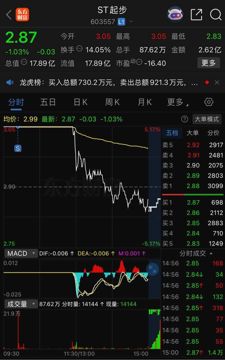 $ST起步(SH603557)$