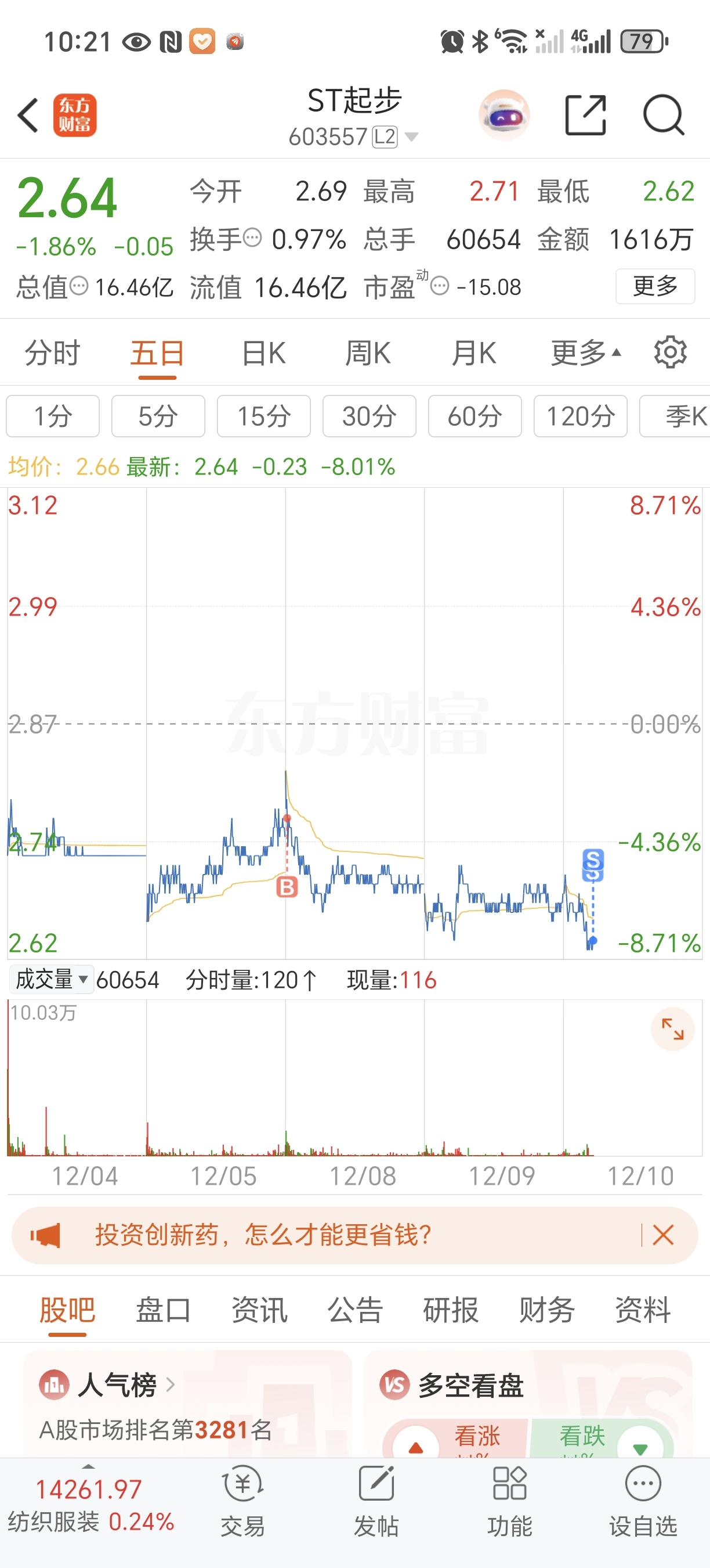 $ST起步(SH603557)$ 巴集玩样,早点退市