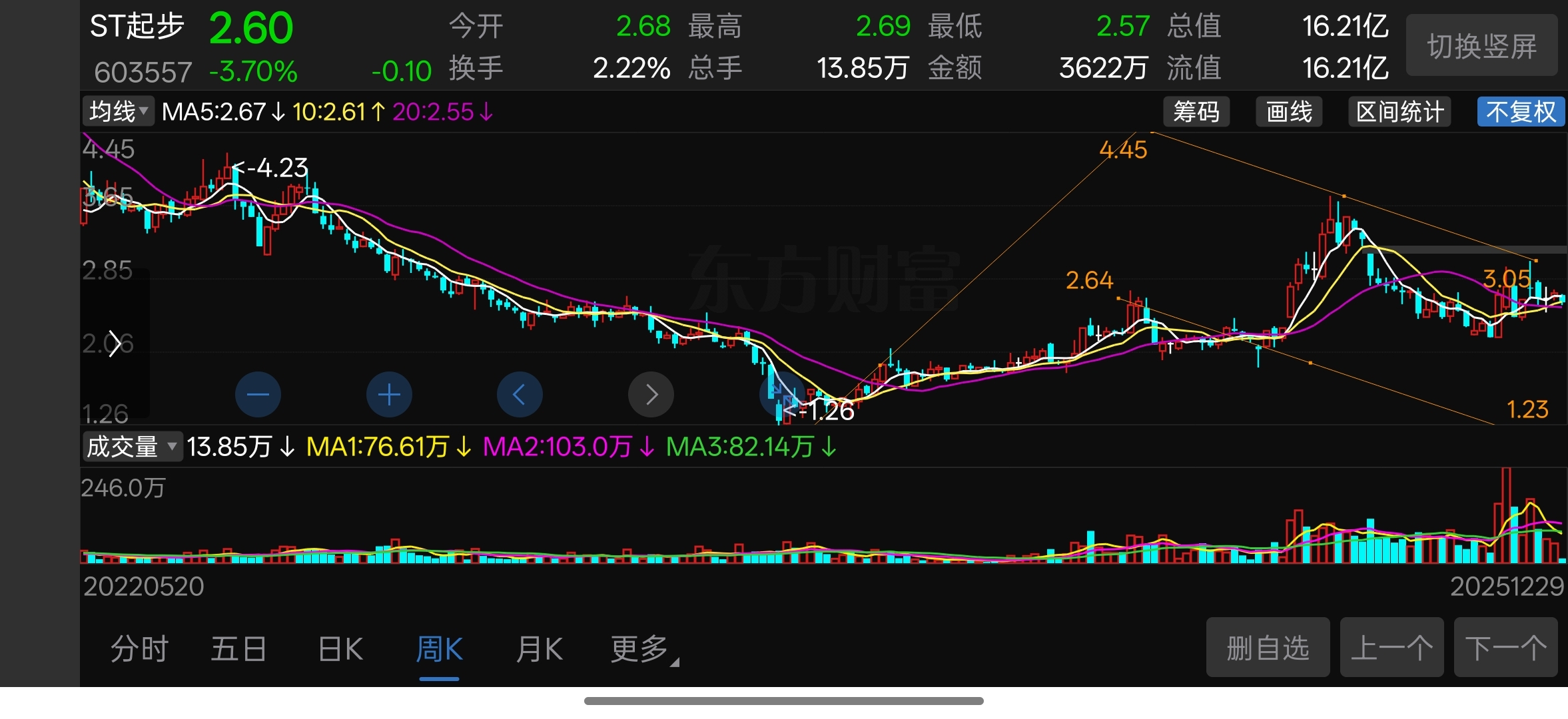 $ST起步(SH603557)$ 如果不能有效突破,那就寻找安全价1.2