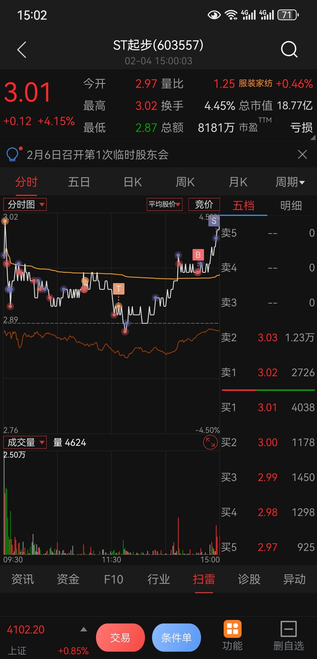 $ST起步(SH603557)$ 问我T的怎么样,今天没丢仓位,没加仓也没减仓。仓位保持不变。