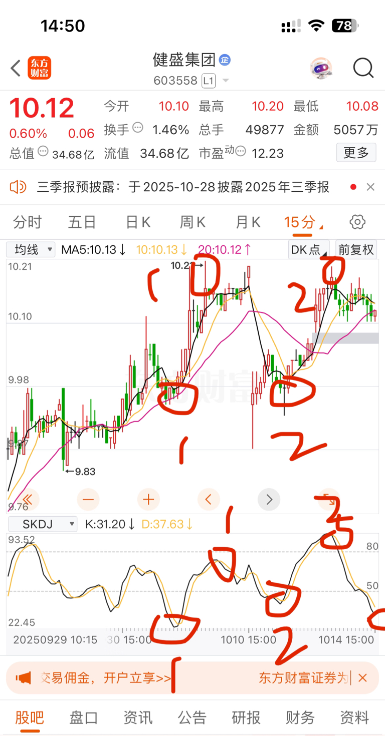 $健盛集团(SH603558)$ 2.7亿已到账,基本回购打满了就是买完2.7亿。昨天还感叹尾盘5分时走坏了下没有不低于10.13-10.14晚上就公告到钱了。那么今天又可能小高开不是补10.01-10.13这10.04缺口了,而是10.08-10.14吃筹码或干脆继续小高开10.12-10.25吃筹码准备洗掉全部老韭菜了。一个字敢跌就买没啥说的了。