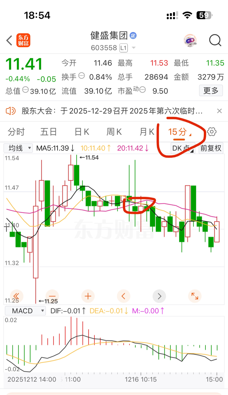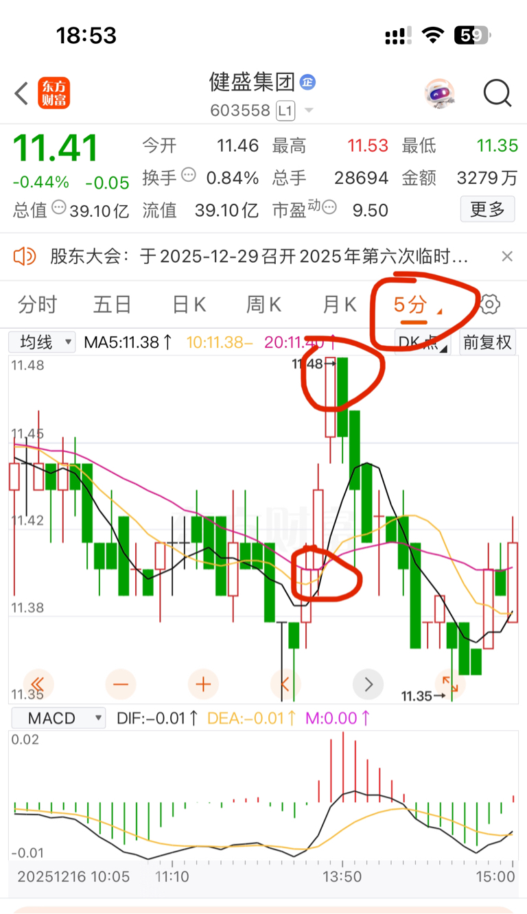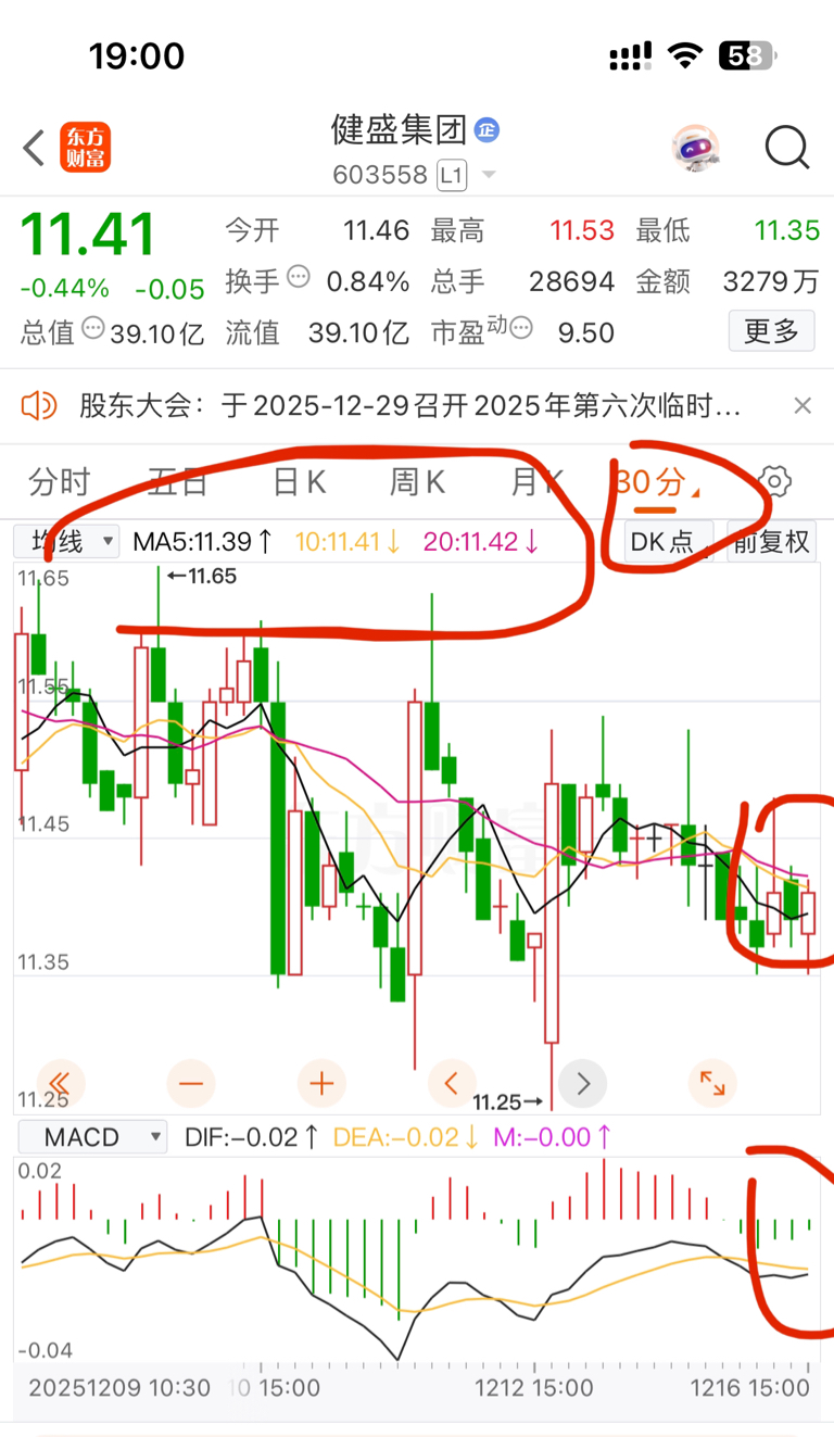 $健盛集团(SH603558)$ 从30-60分看。明天启动时间点位在午盘和尾盘。这样5-15分时,30-60分时和最晚后天的日均线都会在11.4-(11.47-11.48)出现了一遍均线粘合。