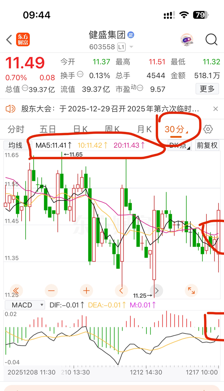 $健盛集团(SH603558)$ 还以为下午呢。你上午就给我干回11.42这里出现均线粘合