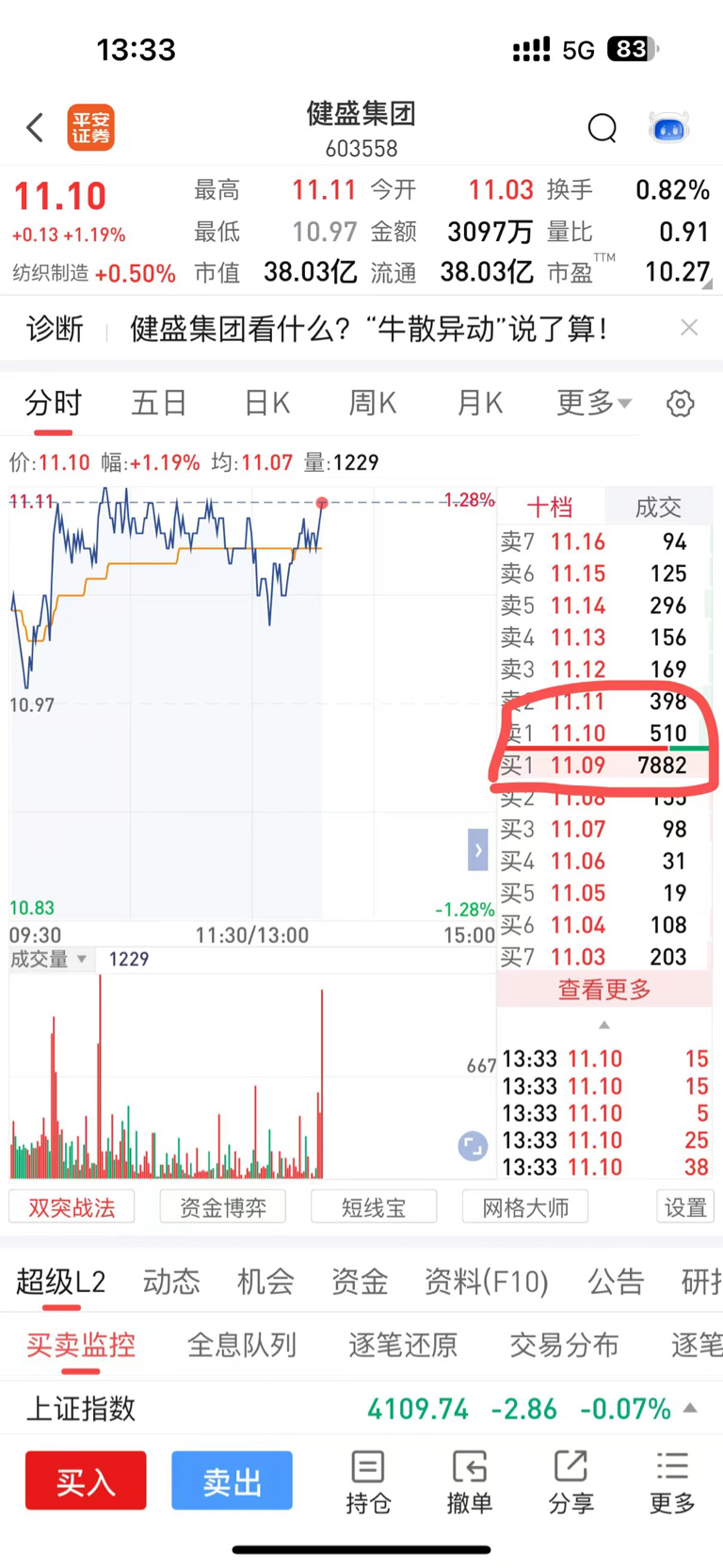 $健盛集团(SH603558)$ 这个绝对是量化交易,一下几十个小单交易,一下又全部撤销。不是量化怎么可能同时进行,就没有人管一管吗