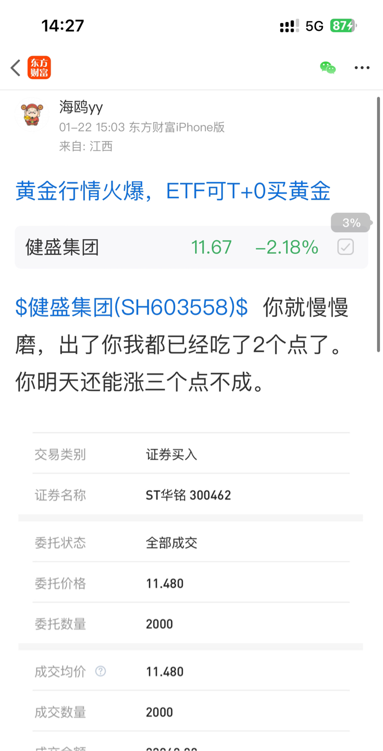 $健盛集团(SH603558)$ 前天让你们11.73-11.77出,昨天让你们11.83-11.87出换一个吃2-3点利润。我换了st华铭,3个点到手。现在11.7从回建盛1-2成仓,2毛泡面到手。明天再买