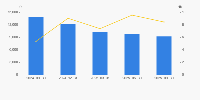 自2024年9月30日以来,公司股东户数连续4期下降,截至目前减幅为33.59%。2024年9月30日至2025年9月30日区间股价上涨57.41%。