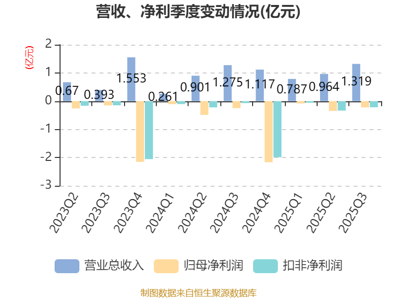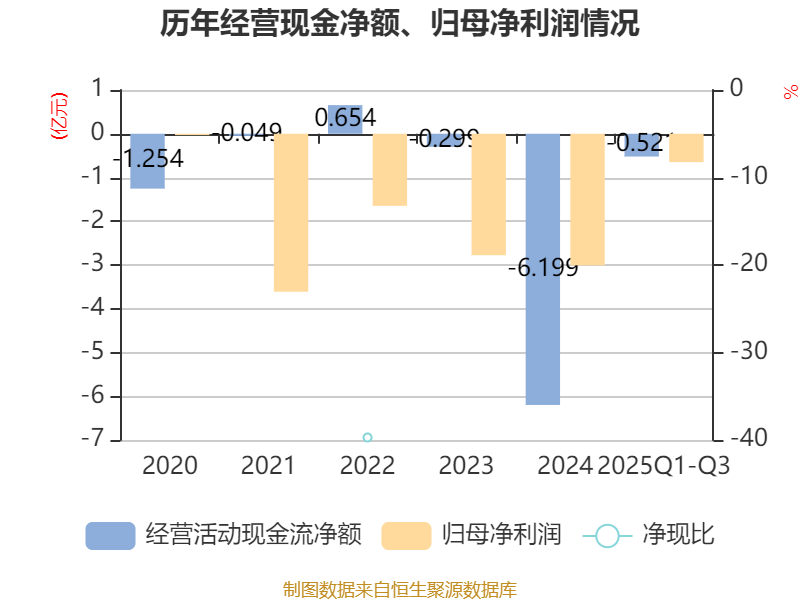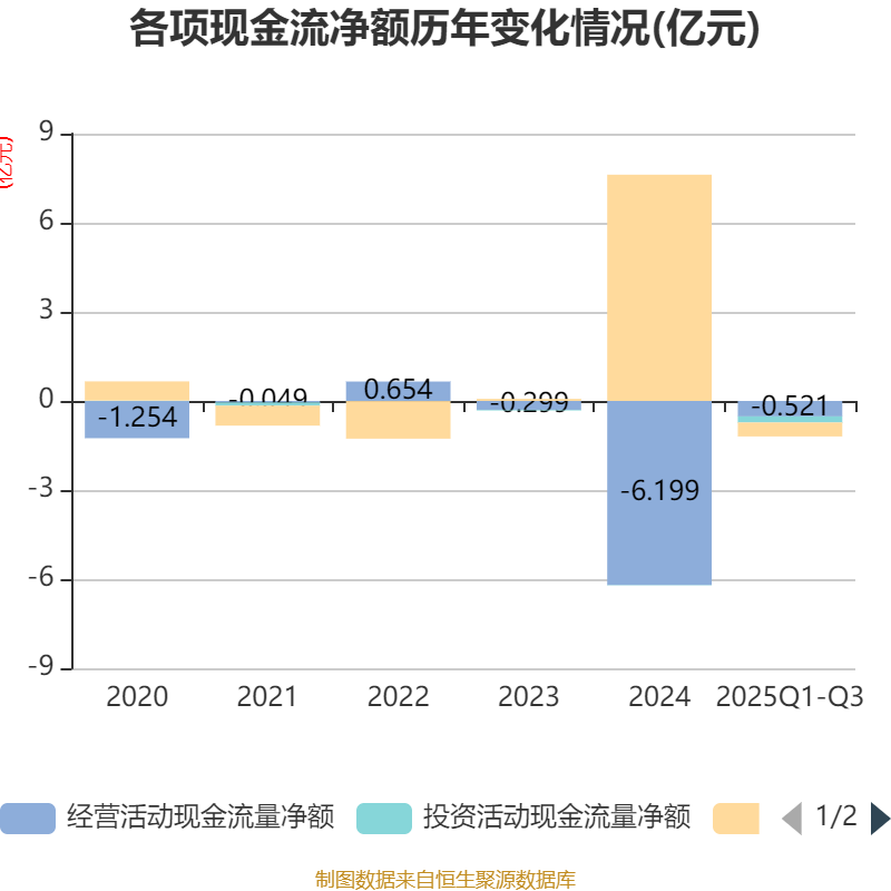 2025年前三季度,公司经营活动现金流净额为-5205.98万元,同比减少4768.91万元;筹资活动现金流净额-4687.35万元,同比减少5082.32万元;投资活动现金流净额-2052.32万元,上年同期为-3.41万元。