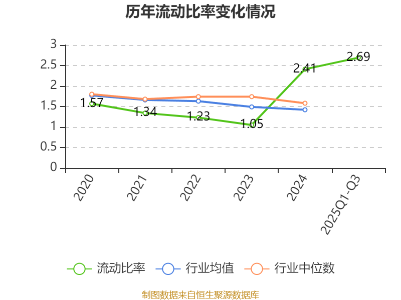 2025年前三季度,公司流动比率为2.69,速动比率为2.05。