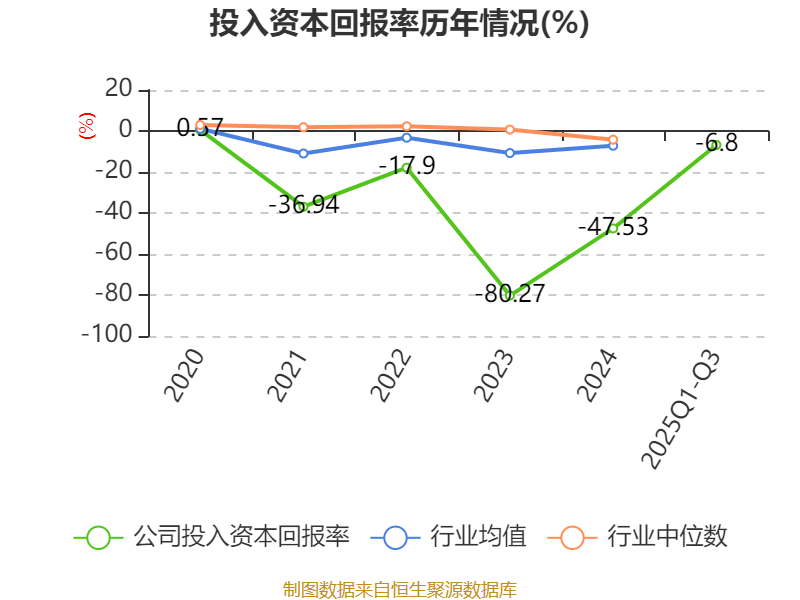 盈利能力方面, 2025年前三季度公司加权平均净资产收益率为-6.6%,同比上升105.89个百分点。公司2025年前三季度投入资本回报率为-6.8%,较上年同期上升51.51个百分点。