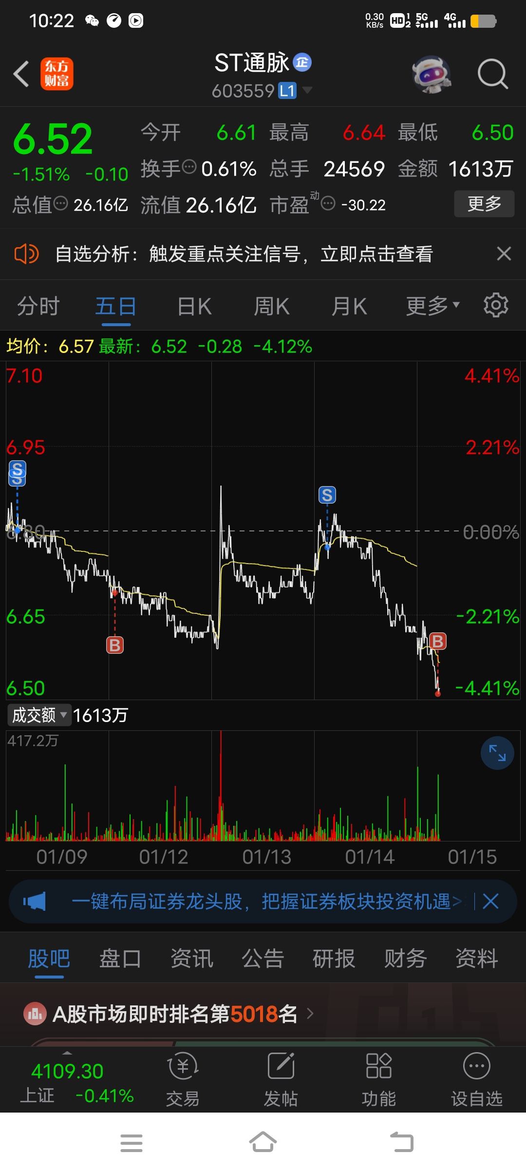 $ST通脉(SH603559)$ 明天应该还有1阴探底才对!!!!我先买点底仓玩玩!明天梭哈!!!!