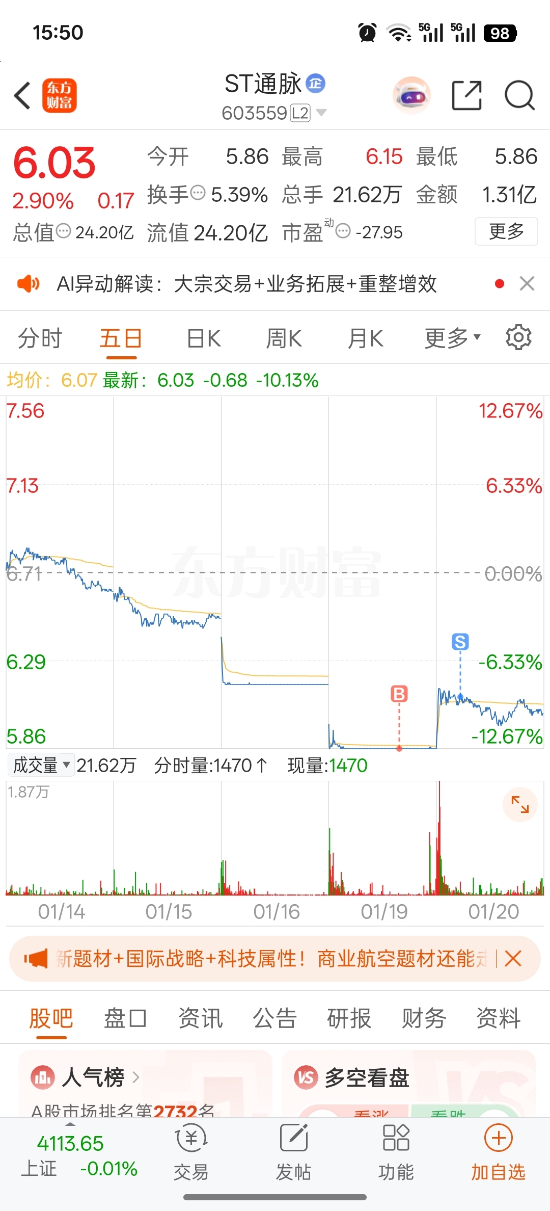 $ST通脉(SH603559)$ 开板了,走了,有机会再回来