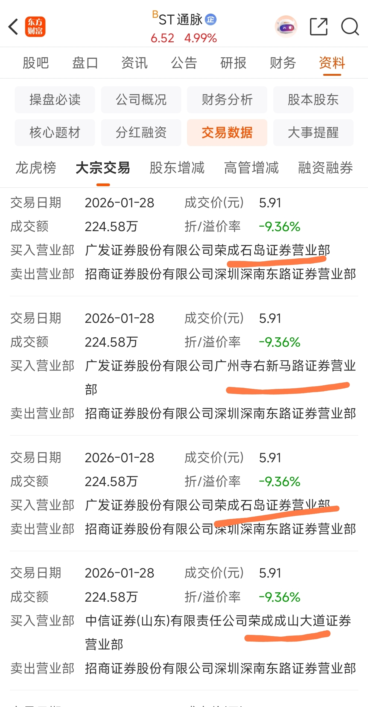 $ST通脉(SH603559)$ 这三个营业部接了快1个亿的货了
