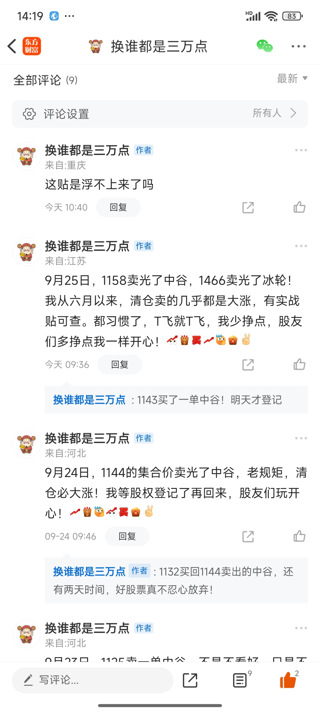2025年9月25日,早上1158卖出的中谷,1143买了一半回来,明天分红登记!前个贴子浮不上来,不要了!