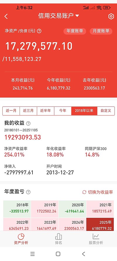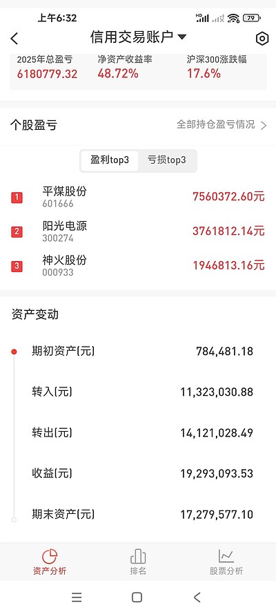 2018年至今为止收益率,盈利,亏损前三,手机软件比平板电脑上展示内容更多。盈利速度最快的还是阳光电源,风口浪尖上涨的更快,亏损最大的还是夕阳西下的地产公司。转出资金比转入资金大,是因为买房及生活费开支。