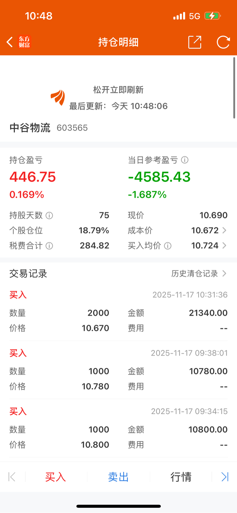 中谷物流今天难得大回调,加仓4000股!年股息率接近11.8%…太香了!