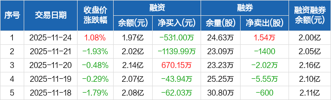 中谷物流:融资净偿还531万元,融资余额1.97亿元(11-24)